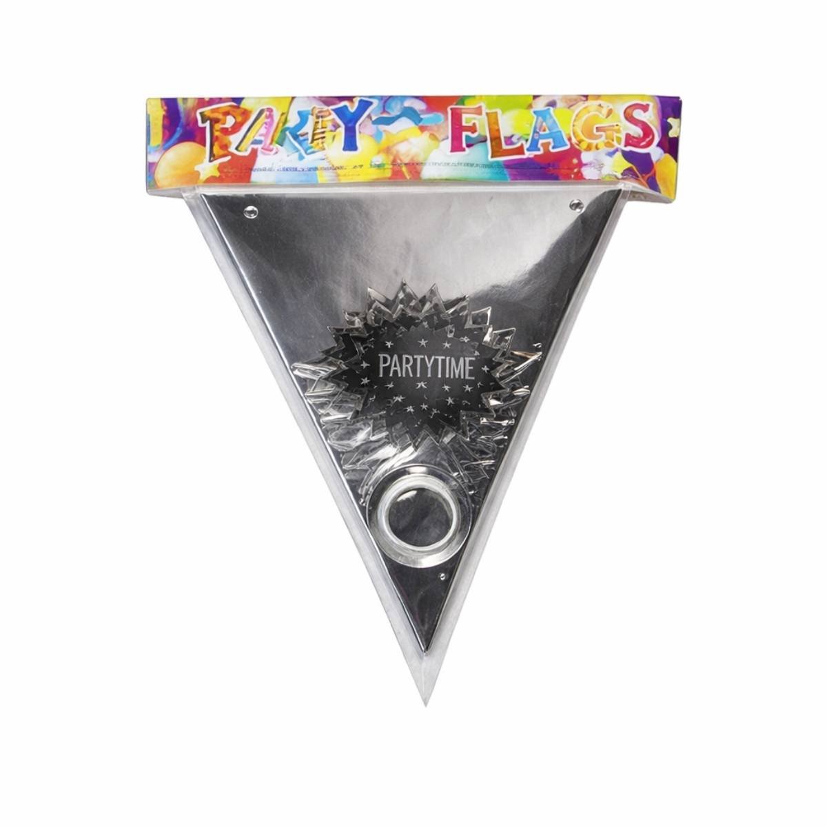 באנר שרשרת דגלים עם מדבקות HAPPY BIRTHDAY כסף