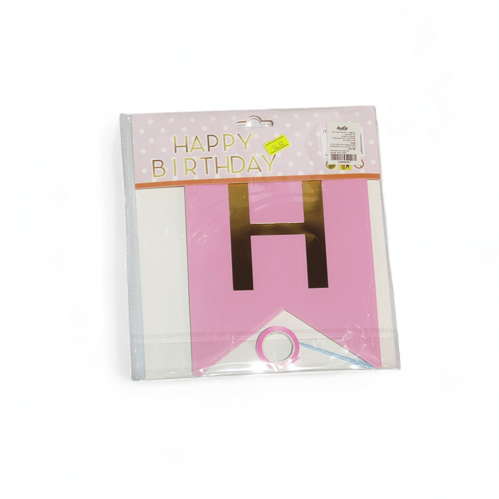 באנר שרשרת דגלים HAPPY BIRTHDAY וורוד