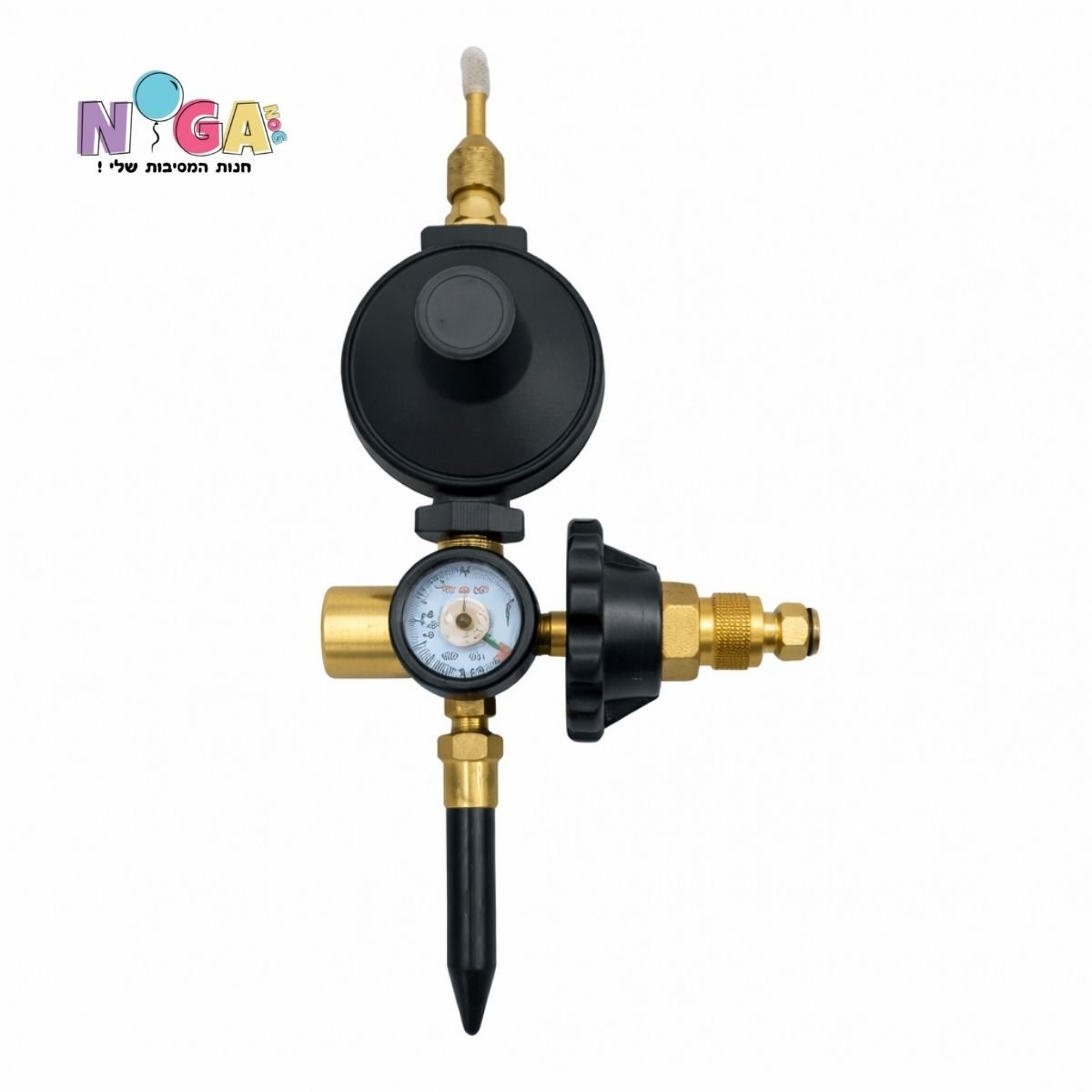 ווסת מקצועי לניפוח בלוני מיילר (אלומיניום), הכולל מנגנון עצירה אוטומטי המפסיק את זרימת הגז כאשר הבלון מגיע לנפח המקסימלי, ובכך מסייע במניעת פיצוץ ושומר על אחידות התוצאה.